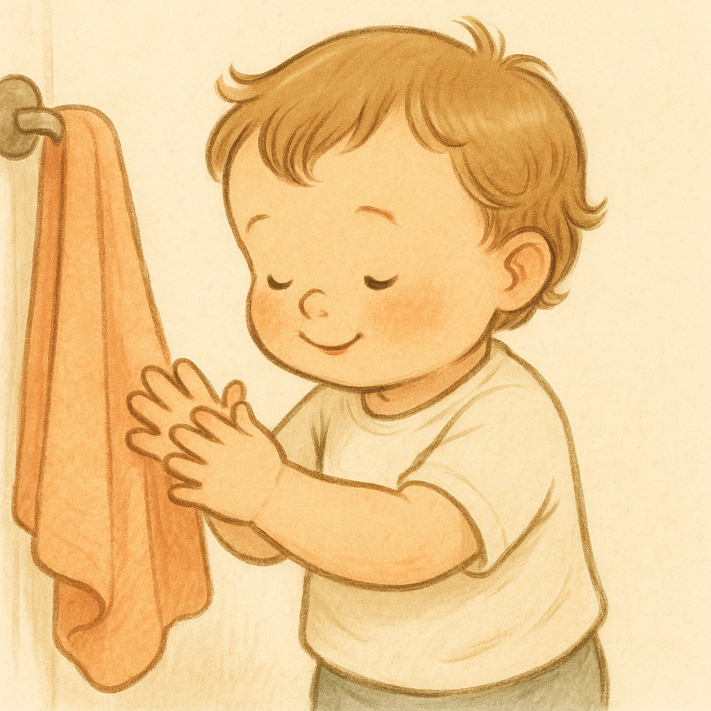 “Let’s get your hands all clean and dry with this cozy towel! 😊”